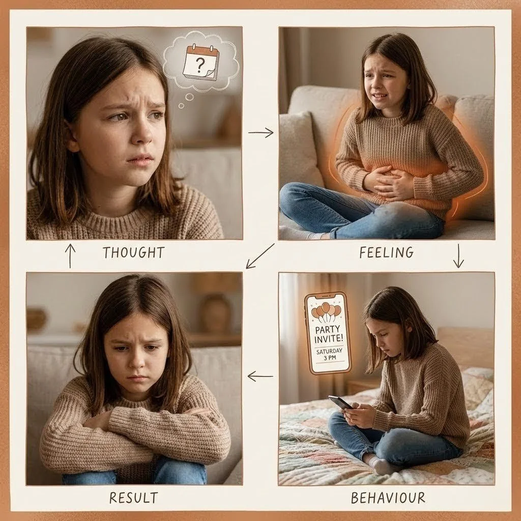 CBT is a structured, evidence-based therapy that helps children and teens understand the connection between their thoughts, feelings, and behaviours. It's the most researched and proven approach for treating childhood anxiety.